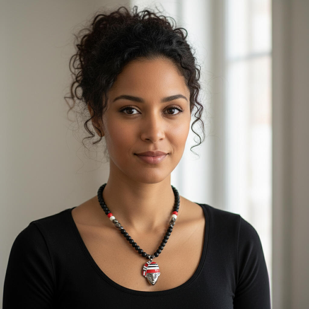 This necklace represents grounded power and quiet authority.
