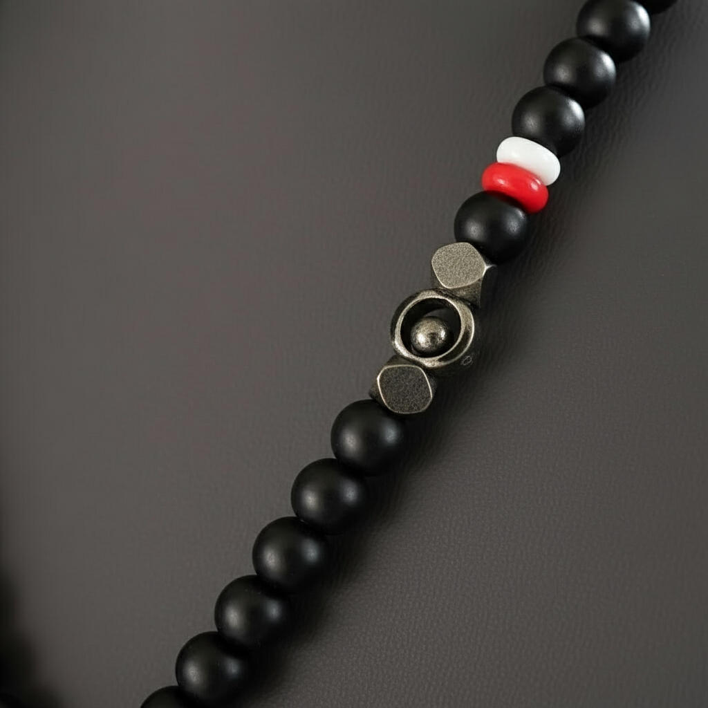 The black onyx beads symbolize protection and resilience.
